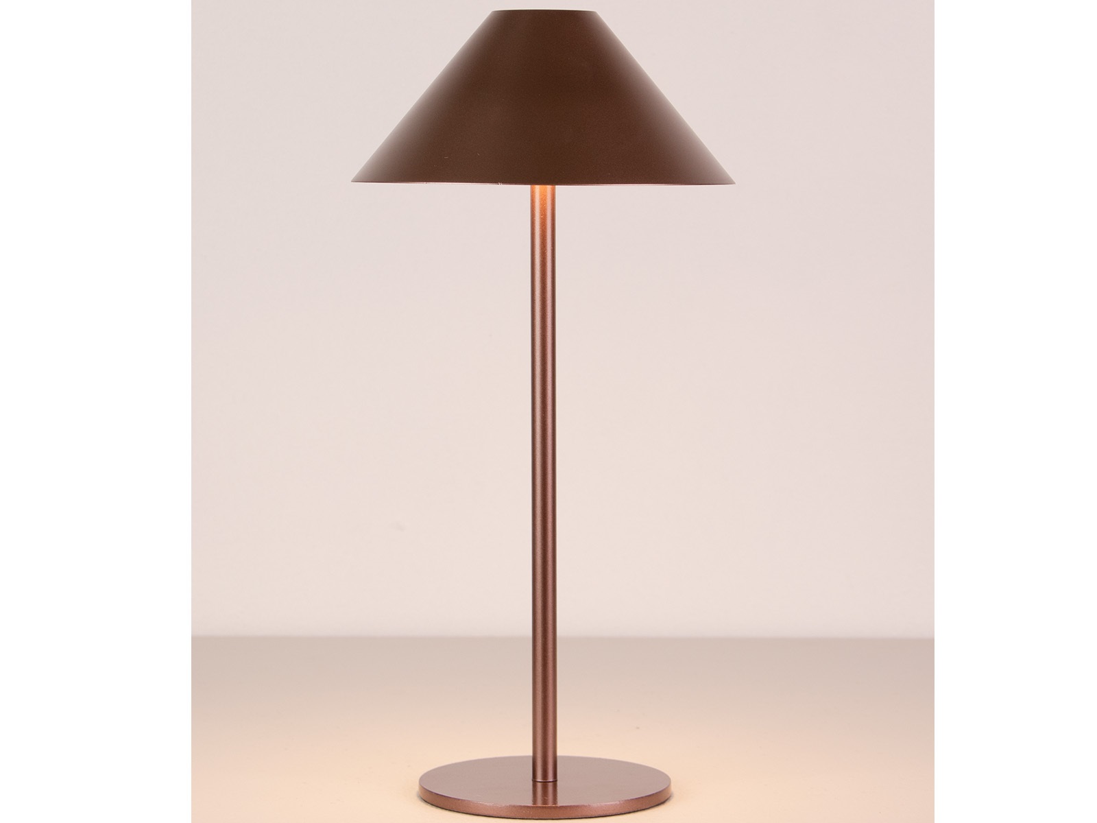 Den enkle og stilrene Era lampe er udført i mocca farvet metal. Den elegante LED-lampe er let at tænde takket være sin praktiske touch-funktion, som samtidig giver mulighed for at regulere lysstyrken ved at holde hånden inde på sensoren.