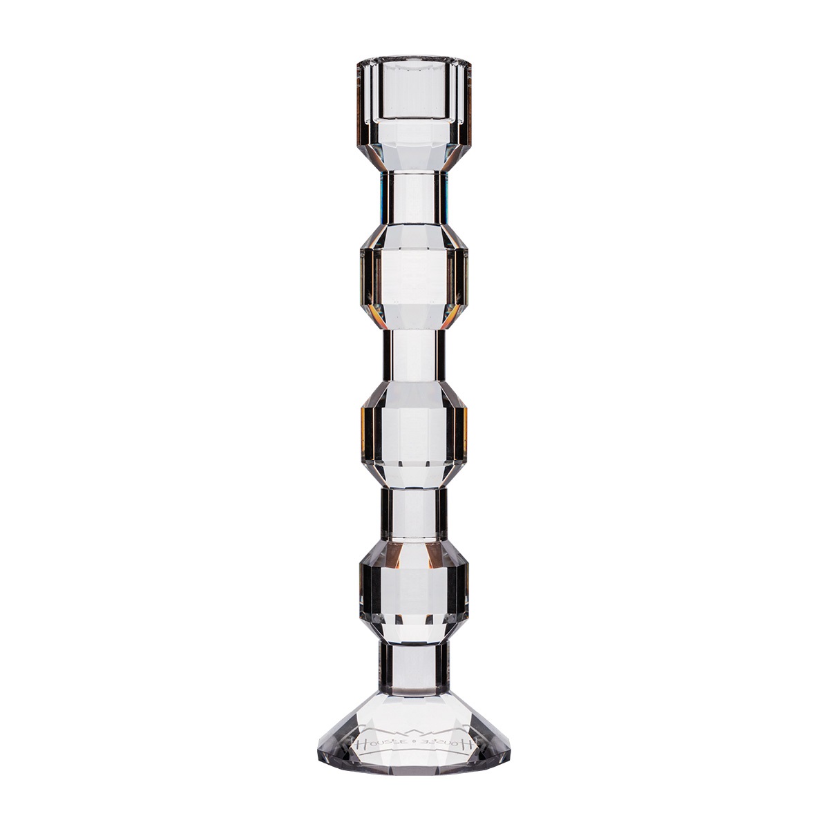 Den store Iris lysestage fra House of Sander er en elegant og tidløs dekoration, håndlavet i massivt, klart glas. Det rene design og de slebne detaljer fanger lyset og skaber et raffineret spil – som en krystaleffekt der tilføjer varme og eksklusivitet til din indretning.