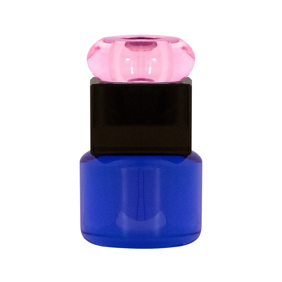 Petunia lysestagen fra House of Sander er en kunstnerisk og iøjnefaldende lysestage i gennemfarvet glas. Den håndlavede stage kombinerer en elegant blå base med en sort midte og en lyserød top, hvilket skaber et harmonisk og moderne farvespil.