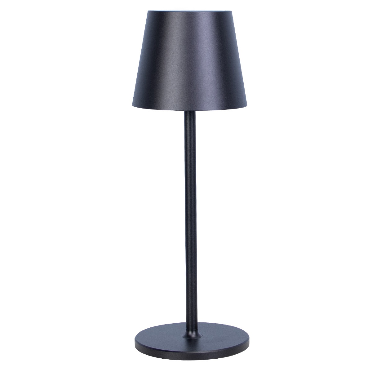 Klio er en elegant LED bordlampe i sortlakeret metal, der kombinerer moderne design med høj funktionalitet. Den trådløse lampe passer perfekt på skrivebordet, natbordet, reolen, sidebordet eller cafébordet – både ude og inde.